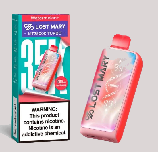 LOST MARY MT35000 watermelon ice 50mg is a powerhouse of flavour and performance. With an impressive 18mL vape juice capacity, this device offers up to 10,000 puffs in turbo mode and an astounding 35,000 puffs in smooth mode. Powered by a reliable 1000mAh rechargeable battery, the Lost Mary MT3500 Turbo ensures uninterrupted vaping pleasure, made even more convenient with its Type C charging capability.