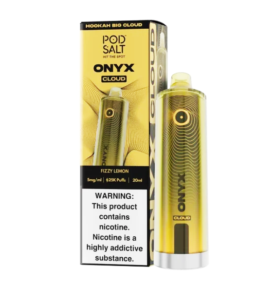POD SALT Onyx Cloud Fizzy Lemon 25000pfs 5mg offers a smooth, long-lasting vape with 25000 puffs and 5mg/ml nicotine.Its sleek, portable design makes it perfect for on-the-go use. Enjoy a satisfying, consistent vape experience with every puff, wherever you are.
